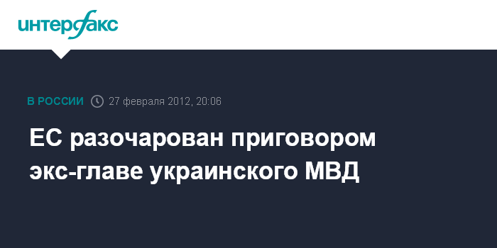 Брюссель. 27 февраля. INTERFAX.RU - Европейский Союз разочарован приговором, вынесенным в Киеве в отношении экс-главы МВД Юрия Луценко, и расценивает его как сигнал о продолжении на Украине судебной практики, которая не соответствует международным стандартам.