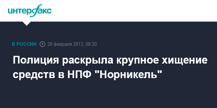 Полиция раскрыла крупное хищение средств в НПФ "Норникель"