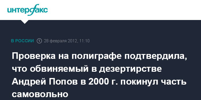 Проверка на полиграфе подтвердила, что обвиняемый в дезертирстве Андрей Попов в 2000 г. покинул часть самовольно