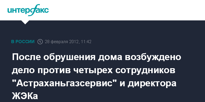 После обрушения дома возбуждено дело против четырех сотрудников "Астраханьгазсервис" и директора ЖЭКа
