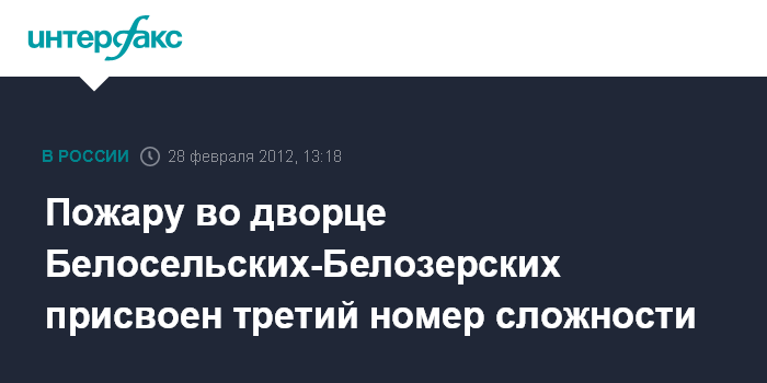 Пожару во дворце Белосельских-Белозерских присвоен третий номер сложности