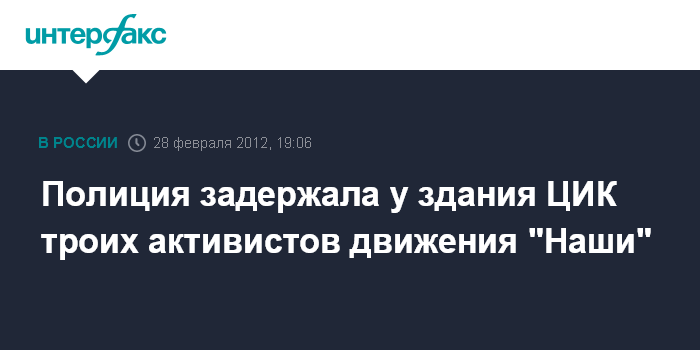Москва. 28 февраля. INTERFAX.RU - Около здания Центризбиркома РФ в Большом Черкасском переулке сотрудники московской полиции задерживают активистов молодежного движения "Наши", которые пришли к зданию ЦИК с цветами, чтобы подарить их представителям оппозиции.
