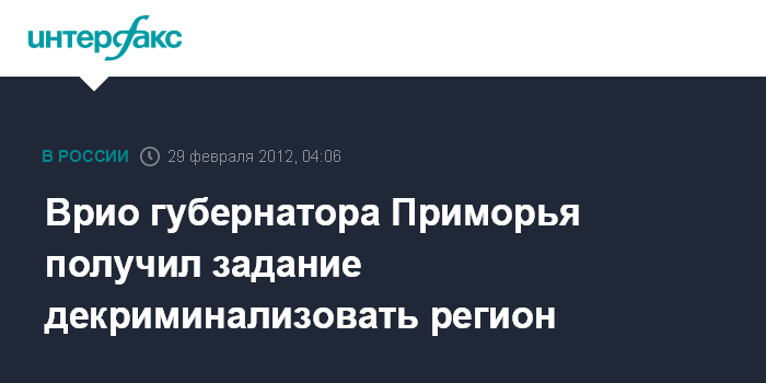 Врио губернатора Приморья получил задание декриминализовать регион