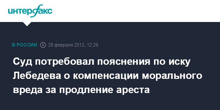Суд потребовал пояснения по иску Лебедева о компенсации морального вреда за продление ареста