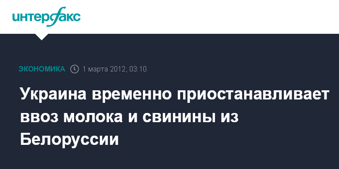 Киев. 1 марта. ИНТЕРФАКС-УКРАИНА - Государственная ветеринарная и фитосанитарная служба Украины с 1 марта 2012 временно приостанавливает ввоз на территорию Украины молока и молочных продуктов из Белоруссии, а также животных, восприимчивых к африканской чуме свиней (АЧС), продукции и сырья из них.
