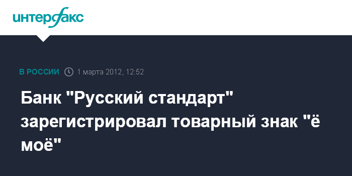 Банк "Русский стандарт" зарегистрировал товарный знак "ё моё"