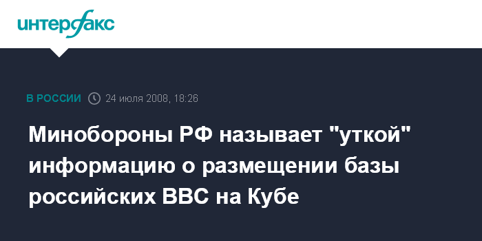 Москва. 24 июля. INTERFAX.RU - Министерство обороны РФ воспринимает заявления анонимных источников в ряде российских СМИ о том, что Москва якобы намерена размещать стратегические бомбардировщики на Кубе, как инсинуации и дешевые приемы.