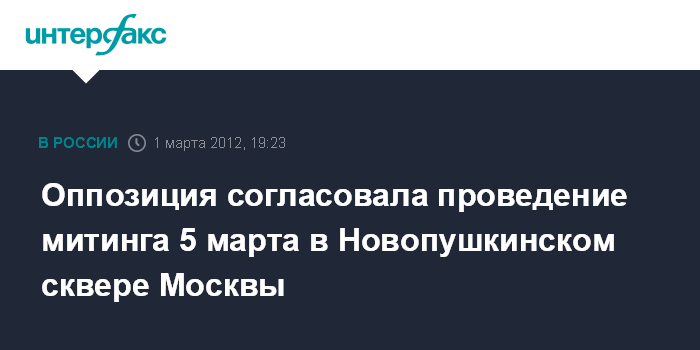 Оппозиция согласовала проведение митинга 5 марта в Новопушкинском сквере Москвы