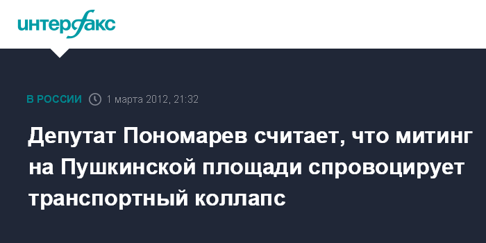 Депутат Пономарев считает, что митинг на Пушкинской площади спровоцирует транспортный коллапс
