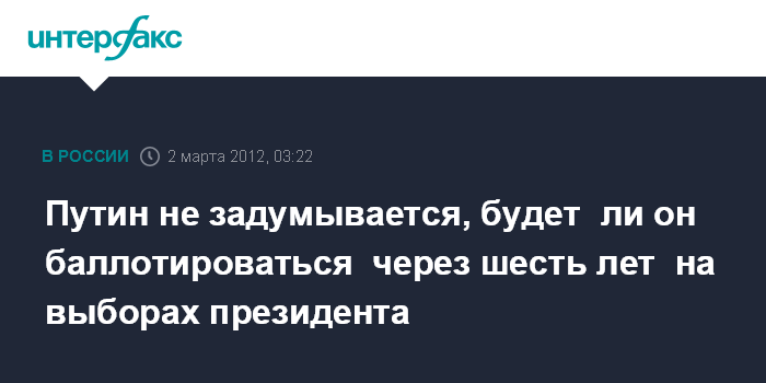 Путин не задумывается, будет ли он баллотироваться через шесть лет на выборах президента