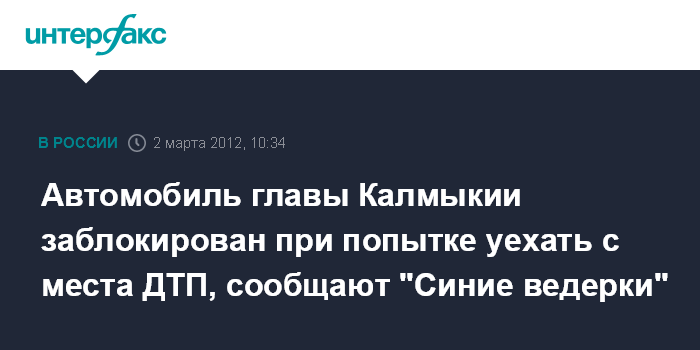 Москва. 2 марта. INTERFAX.RU - Координатор общества "Синих ведерок" (ОСВ) Данила Линдэле утверждает, что на Мичуринском проспекте в Москве автомобилисты заблокировали автомобиль главы Калмыкии при попытке скрыться после мелкого ДТП.