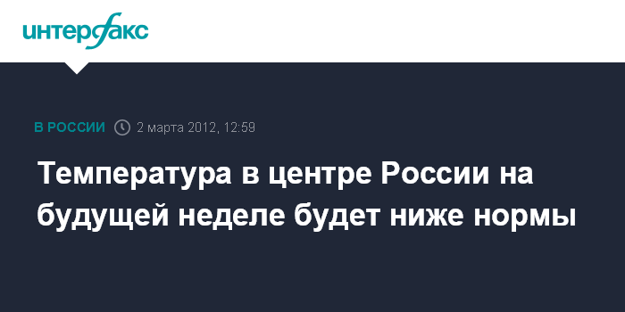 Температура в центре России на будущей неделе будет ниже нормы