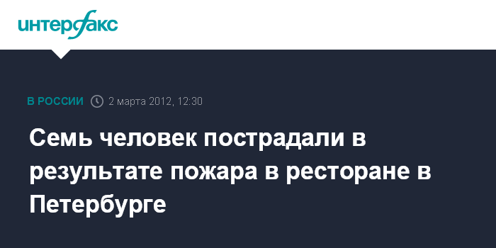 Санкт-Петербург. 2 марта. INTERFAX.RU - В результате пожара в ресторане "Харбин" в Петербурге пострадали семь человек, сообщили "Интерфаксу" в дежурной службе администрации Красногвардейского района северной столице.