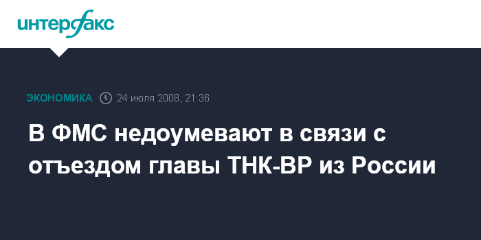 В ФМС недоумевают в связи с отъездом главы ТНК-ВР из России