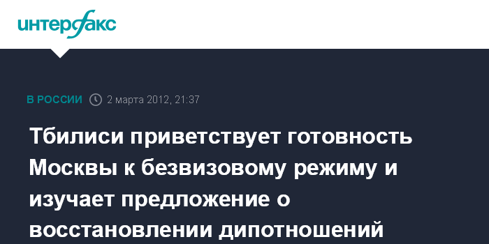 Тбилиси приветствует готовность Москвы к безвизовому режиму и изучает предложение о восстановлении дипотношений