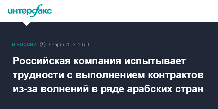 Российская компания испытывает трудности с выполнением контрактов из-за волнений в ряде арабских стран