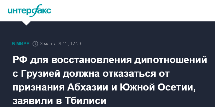 РФ для восстановления дипотношений с Грузией должна отказаться от признания Абхазии и Южной Осетии, заявили в Тбилиси