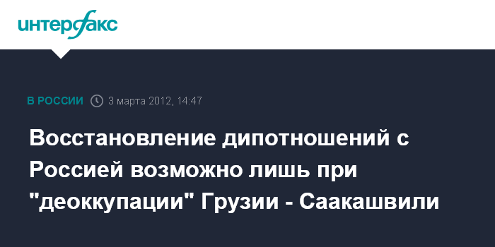 Тбилиси. 3 марта. INTERFAX.RU - Президент Грузии Михаил Саакашвили заявил, что дипломатические отношения с Россией могут быть восстановлены, когда российские власти признают суверенитет Грузии в ее прежних границах.