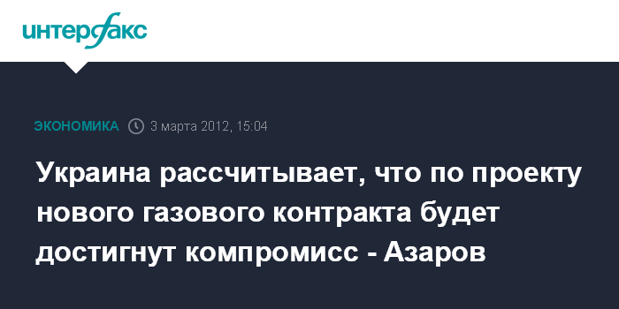 Украина рассчитывает, что по проекту нового газового контракта будет достигнут компромисс - Азаров