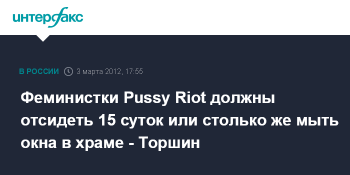 Феминистки Pussy Riot должны отсидеть 15 суток или столько же мыть окна в храме - Торшин