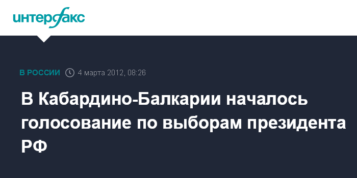 Нальчик. 4 марта. ИНТЕРФАКС-ЮГ - В 8:00 мск открылись избирательные участки для голосования по выборам президента РФ в Кабардино-Балкарской Республике, сообщили агентству "Интерфакс – Юг" в республиканском избиркоме.