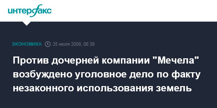 Против дочерней компании "Мечела" возбуждено уголовное дело по факту незаконного использования земель