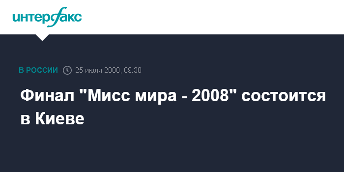 Киев. 25 июля. INTERFAX.RU - Финальная часть 58-го конкурса красоты "Мисс мира" пройдет четвертого октября в киевском Национальном дворце искусств "Украина", сообщил замглавы городской госадминистрации Киева Виталий Журавский.