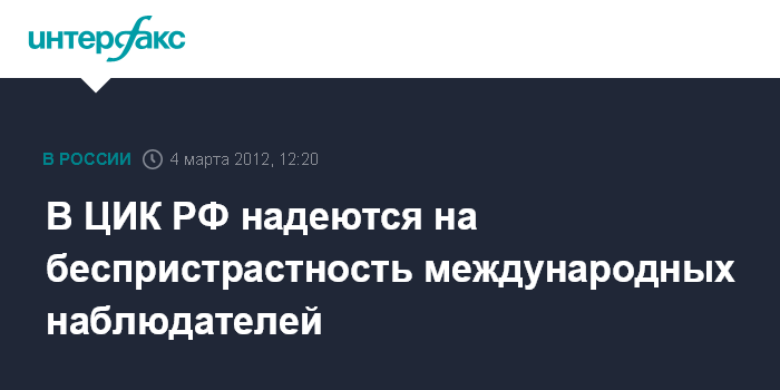 Москва. 4 марта. INTERFAX.RU - В Центризбиркоме РФ рассчитывают, что представители зарубежных государств будут беспристрастны при наблюдении за выборами президента РФ.