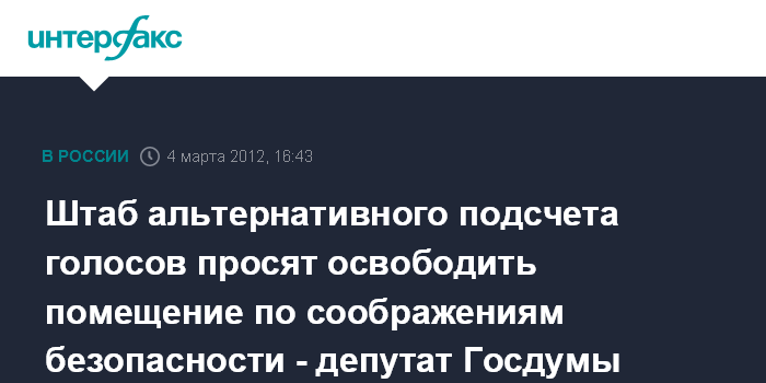 Штаб альтернативного подсчета голосов просят освободить помещение по соображениям безопасности - депутат Госдумы