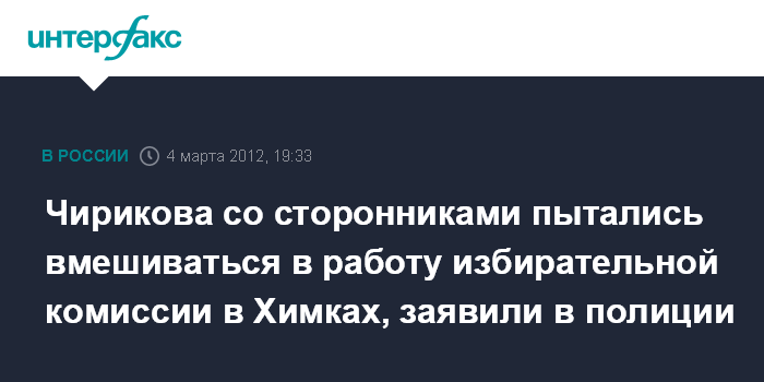 Москва. 4 марта. INTERFAX.RU - Защитница Химкинского леса Евгения Чирикова со своими помощниками пришла на один из избирательных участков в подмосковных Химках в качестве наблюдателя, заявил "Интерфаксу" начальник пресс-службы ГУ МВД России по Московской области Евгений Гильдеев. "На избирательный участок в школе № 18 в подмосковных Химках пришла Е.Чирикова и около 10-12 ее помощников, которые начали вмешиваться в работу избирательной комиссии", - сказал Е.Гильдеев.