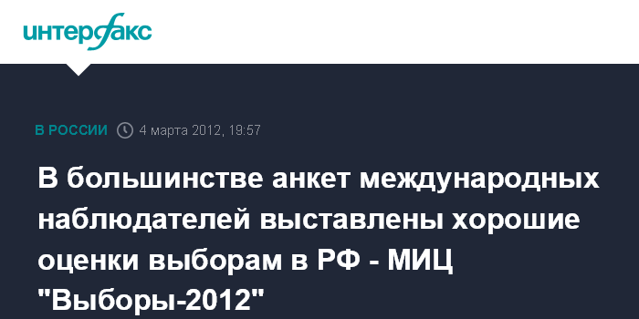 В большинстве анкет международных наблюдателей выставлены хорошие оценки выборам в РФ - МИЦ "Выборы-2012"