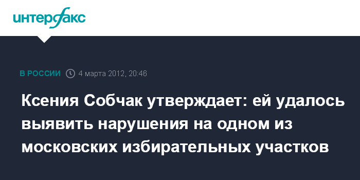 Москва. 4 марта. INTERFAX.RU - Телеведущая Ксения Собчак рассказала в штабе кандидата в президенты РФ Михаила Прохорова о зафиксированных ею нарушениях на двух участках в Москве. Как заявила К.Собчак журналистам, на участках 114 и 117 в Москве были списки людей, якобы занятых на непрерывных производствах, а значит, имеющих право на голосование не по месту регистрации, если от них в течение трех суток до выборов поступит соответствующая просьба. "Заявления были явно написаны одним почерком. На 117 участке мы наткнулись на список людей с номерами телефонов, я позвонила одной девушке, оказалось она не работает ни на каком непрерывном производстве, я застала ее дома",- сказала К.Собчак.