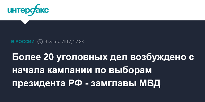 Более 20 уголовных дел возбуждено с начала кампании по выборам президента РФ - замглавы МВД