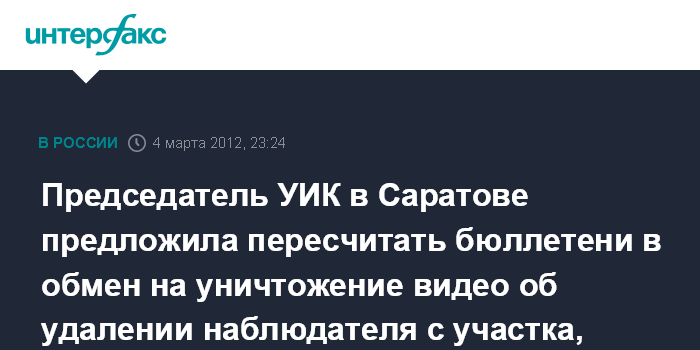 Председатель УИК в Саратове предложила пересчитать бюллетени в обмен на уничтожение видео об удалении наблюдателя с участка, заявляют "эсеры"