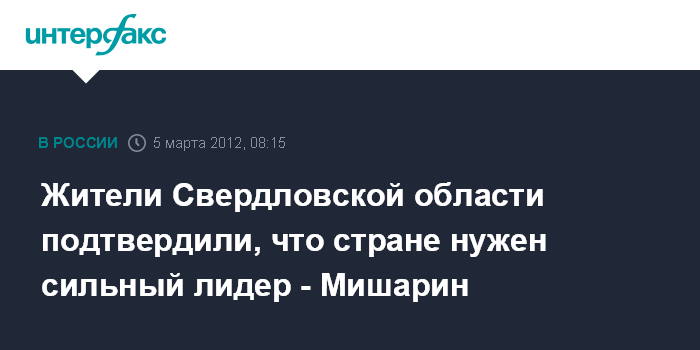 Жители Свердловской области подтвердили, что стране нужен сильный лидер - Мишарин