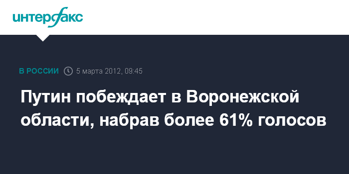 Путин побеждает в Воронежской области, набрав более 61% голосов