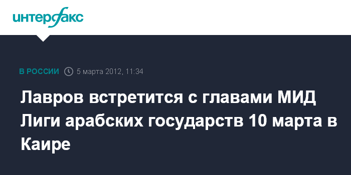 Москва. 5 марта. INTERFAX.RU - Встреча глав МИД России и стран-членов Лиги арабских государств состоится на этой неделе в Каире.