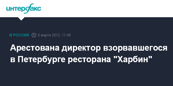 Арестована директор взорвавшегося в Петербурге ресторана "Харбин"