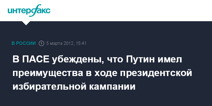 В ПАСЕ убеждены, что Путин имел преимущества в ходе президентской избирательной кампании