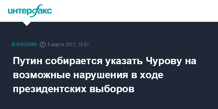 Путин собирается указать Чурову на возможные нарушения в ходе президентских выборов