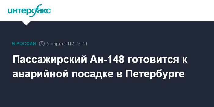 Санкт-Петербург. 5 марта. INTERFAX.RU - В Петербурге в аэропорту "Пулково" готовятся к аварийной посадке пассажирского самолета Ан-148, летящего из Гамбурга.