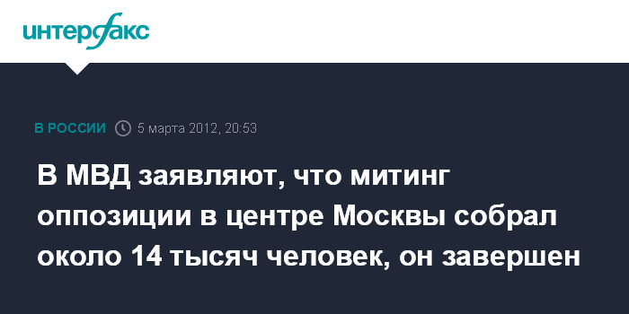 В МВД заявляют, что митинг оппозиции в центре Москвы собрал около 14 тысяч человек, он завершен