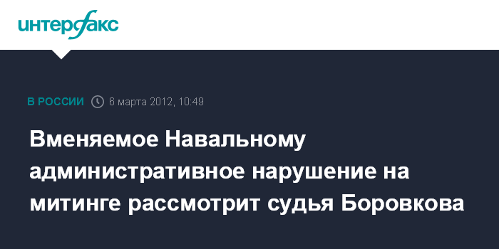 Вменяемое Навальному административное нарушение на митинге рассмотрит судья Боровкова