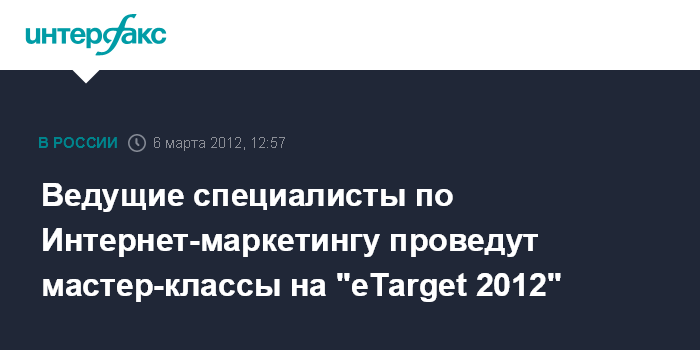 Москва. 6 марта. INTERFAX.RU - В Москве 22-23 марта состоится конференция "eTarget-2012 "Управление аудиторией и маркетинг в Интернете". Это главное событие года для организаций, которые заинтересованы в применении онлайнового маркетинга для повышения продаж и более эффективной работы с целевой аудиторией.