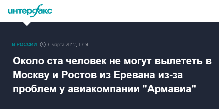 Ереван. 6 марта. INTERFAX.RU - Порядка ста пассажиров ожидают развязки переговоров между национальным авиаперевозчиком Армении компанией "Армавиа" и ереванским международным аэропортом "Звартноц".