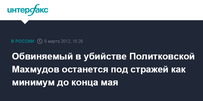 Москва. 6 марта. INTERFAX.RU - Басманный суд Москвы во вторник продлил до 31 мая арест Рустаму Махмудову, обвиняемому в убийстве журналистки Анны Политковской.