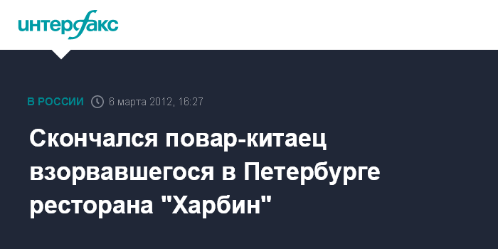 Скончался повар-китаец взорвавшегося в Петербурге ресторана "Харбин"