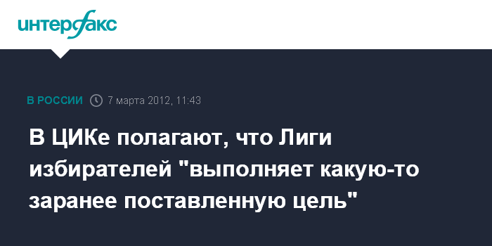 Москва. 7 марта. INTERFAX.RU - В руководстве ЦИК РФ назвали заявление Лиги избирателей об отказе признать результаты выборов президента России шагом, который был запланирован заранее, еще до результатов голосования.