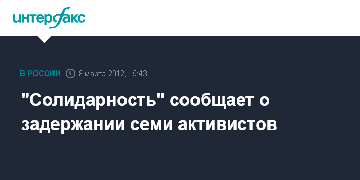 Москва. 8 марта. INTERFAX.RU - Семь членов оппозиционного движения "Солидарность" были задержаны в четверг в центре Москвы, сообщила "Интерфаксу" пресс-секретарь "Солидарности" Ольга Шорина. "На Красной площади задержали семь наших человек. Каков повод для этого - непонятно. Они просто гуляли по Красной площади с белыми ленточками на груди", - сказала О.Шорина. По ее словам, задержанные в настоящий момент находятся в УВД "Китай-город".