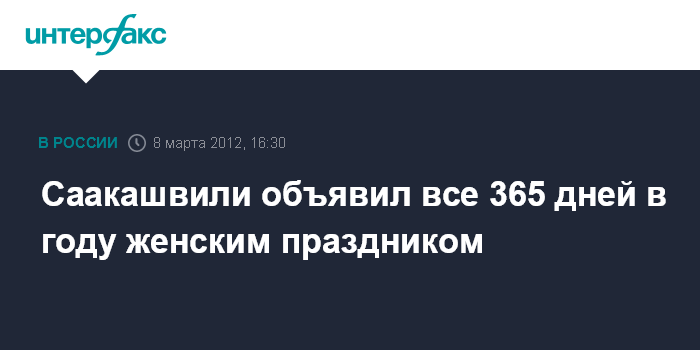 Тбилиси. 8 марта. INTERFAX.RU - Президент Грузии Михаил Саакашвили заявил, что не только 8 марта, но и каждый день в году должен быть женским праздником. "Некоторые говорят, что мы не должны праздновать 8 марта, поскольку это коммунистический праздник, придуманный Кларой Цеткин, но, по-моему, женский день должен отмечаться ежедневно", - говорится в поздравлении, распространенном М.Саакашвили в связи с Международным женским днем на его официальной странице в "Facebook" в четверг.